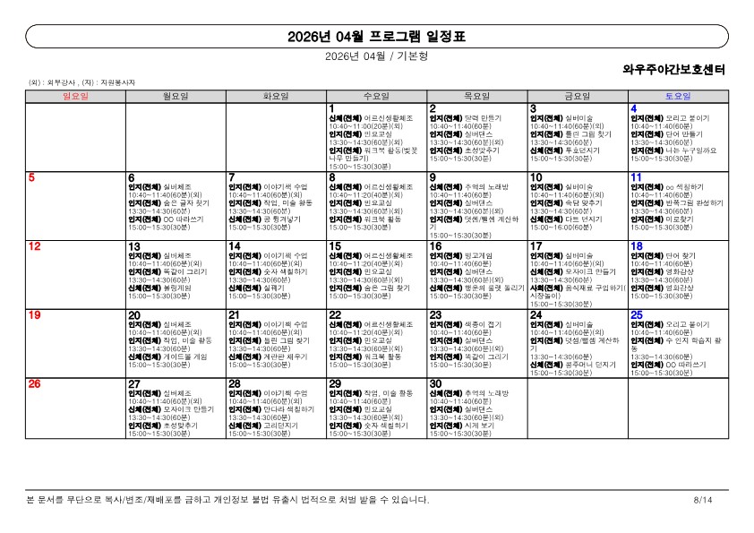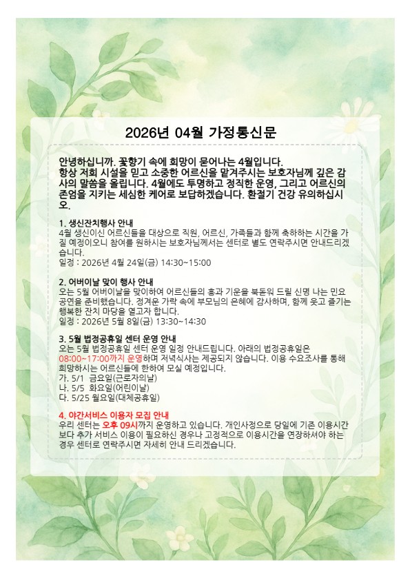 2026년 4월 가정통신문