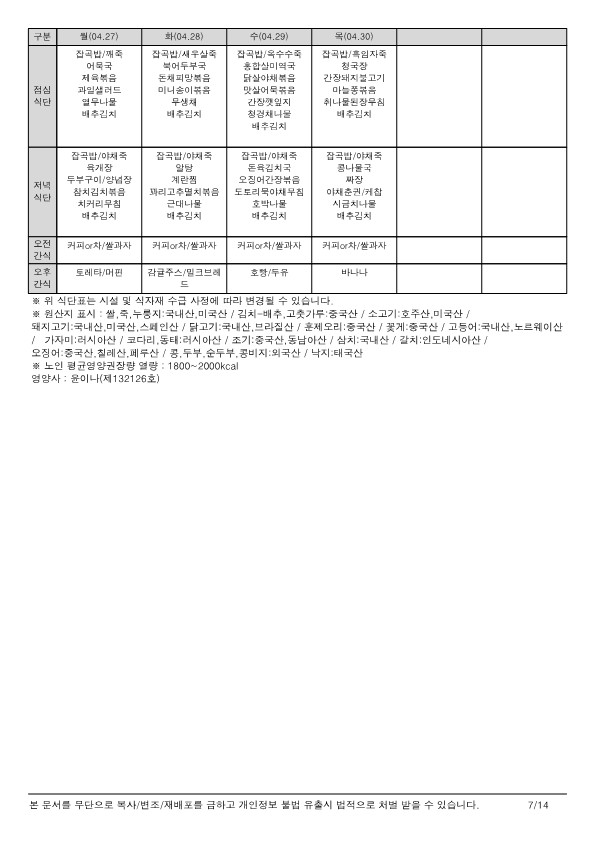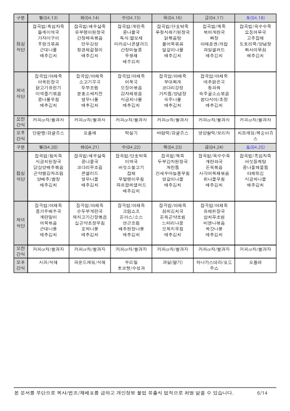 식단표